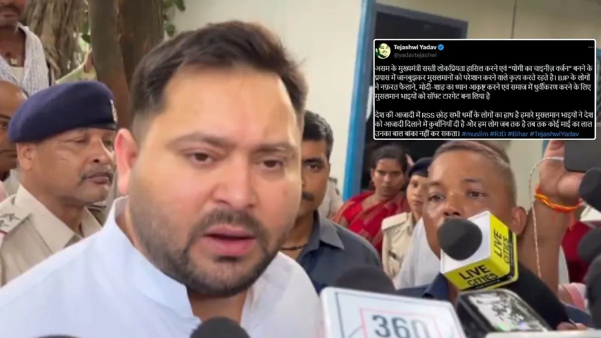 सोशल मीडिया प्लेटफार्म एक्स पर एक पोस्ट में तेजस्वी यादव ने लिखा है, 'असम के मुख्यमंत्री सस्ती लोकप्रियता हासिल करने एवं “योगी का चाइनीज वर्जन” बनने के प्रयास में जानबुझकर मुसलमानों को परेशान करने वाले कृत्य करते रहते हैं। BJP के लोगों ने नफरत फैलाने, मोदी-शाह का ध्यान आकृष्ट करने एवं समाज में ध्रुवीकरण करने के लिए मुसलमान भाइयों को सॉफ्ट टारगेट बना लिया है। देश की आजादी में RSS छोड़ सभी धर्मों के लोगों का हाथ है हमारे मुसलमान भाइयों ने देश को आजादी दिलाने में कुर्बानियां दी हैं और हम लोग जब तक हैं तब तक कोई माई का लाल उनका बाल बांका नहीं कर सकता।'