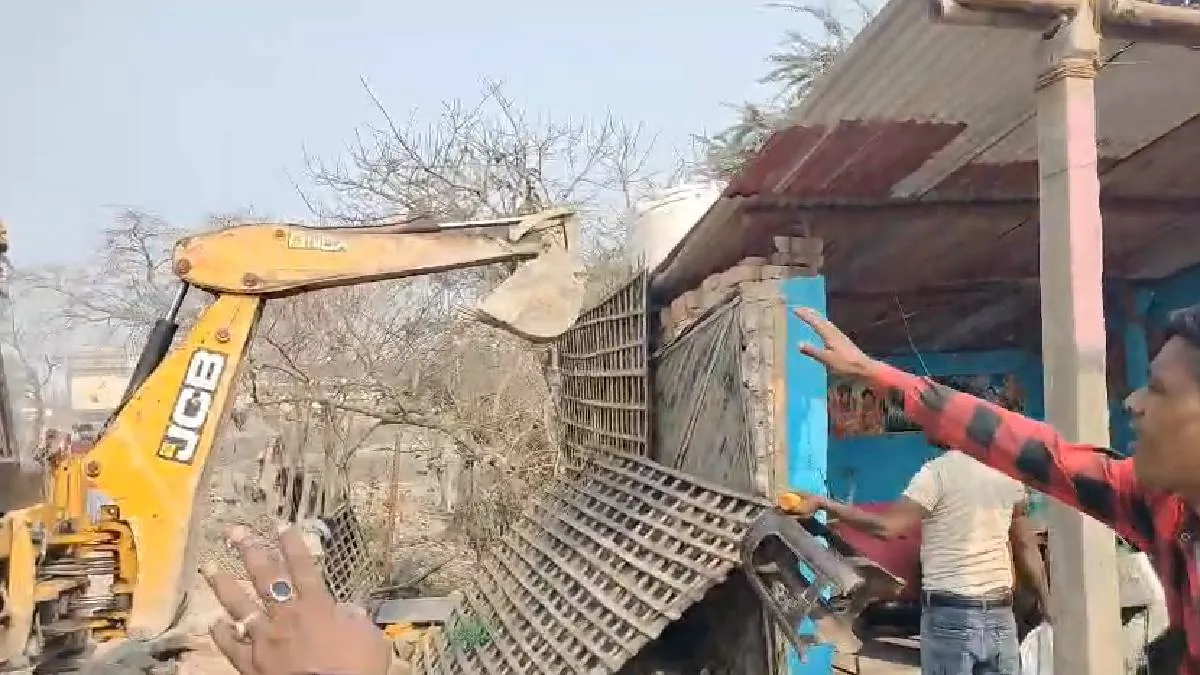 अवैध दुकानों पर चला बुलडोजर