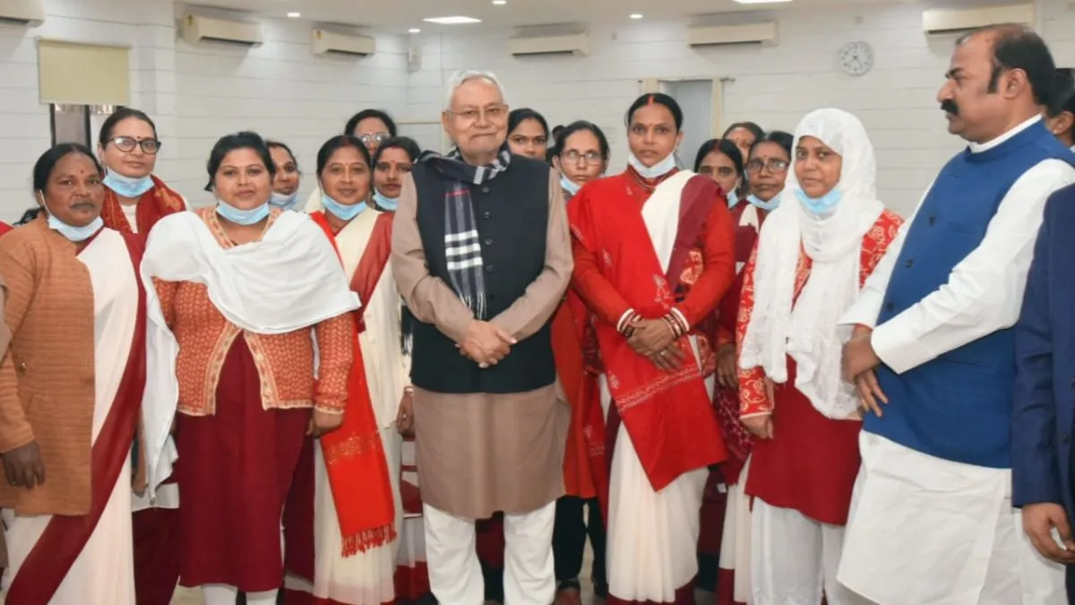 पटना: मुख्यमंत्री नीतीश कुमार ने आंगनबाड़ी सेविकाओं और सहायिकाओं के मानदेय में सम्मानजनक बढ़ोतरी करने और हड़ताल के दौरान चयनमुक्त की गई सेविकाओं और सहायिकाओं को वापस लेने का ऐलान कर उन्हें बड़ा तोहफा दिया है। मुख्यमंत्री ने एक अणे मार्ग पर लोकसंवाद के दौरान आंगनबाड़ी सेविकाओं और सहायिकाओं के शिष्टमंडल से मुलाकात के दौरान यह ऐलान किया। इस मुलाकात के दौरान इन लोगों ने अपनी समस्याएं मुख्यमंत्री के सामने रखी थी।