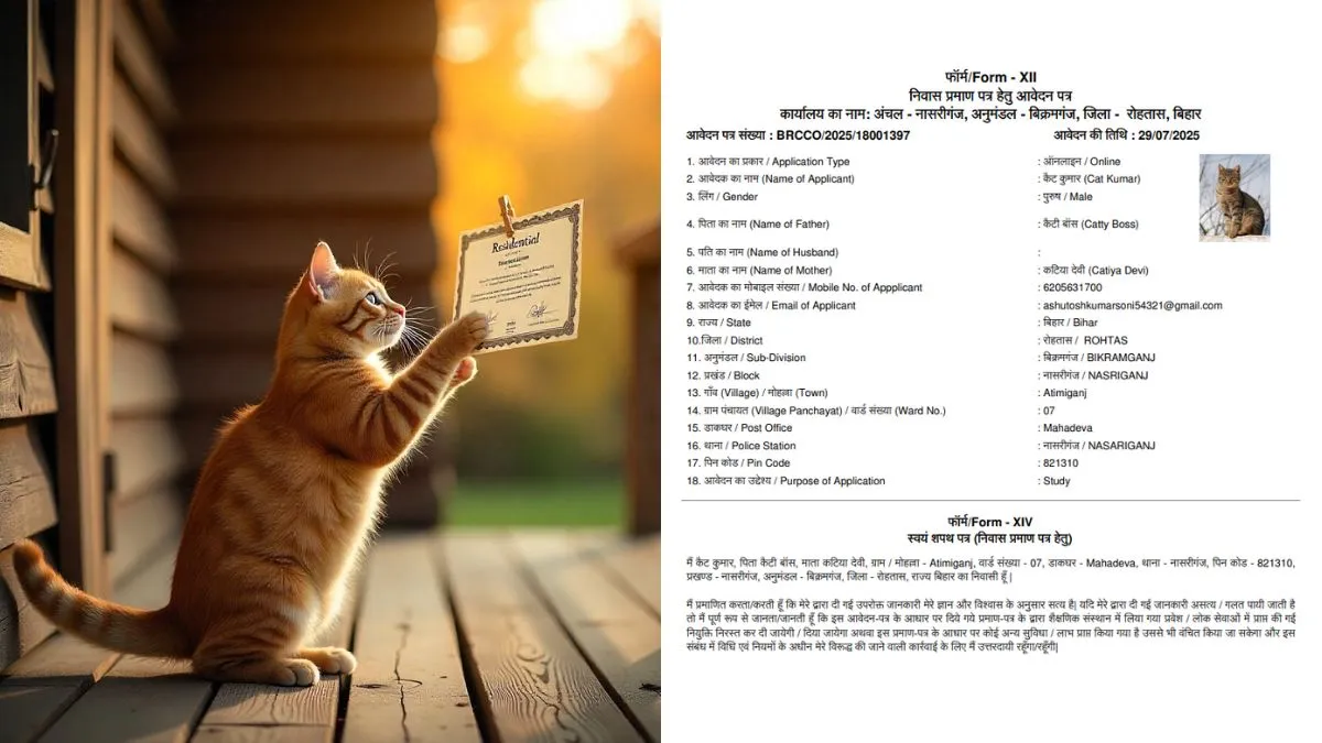 नाम- कैट कुमार, पिता- कैटी बॉस, मां- किटया देवी, बिहार में बिल्ली का भी बना दिया निवास प्रमाण पत्र