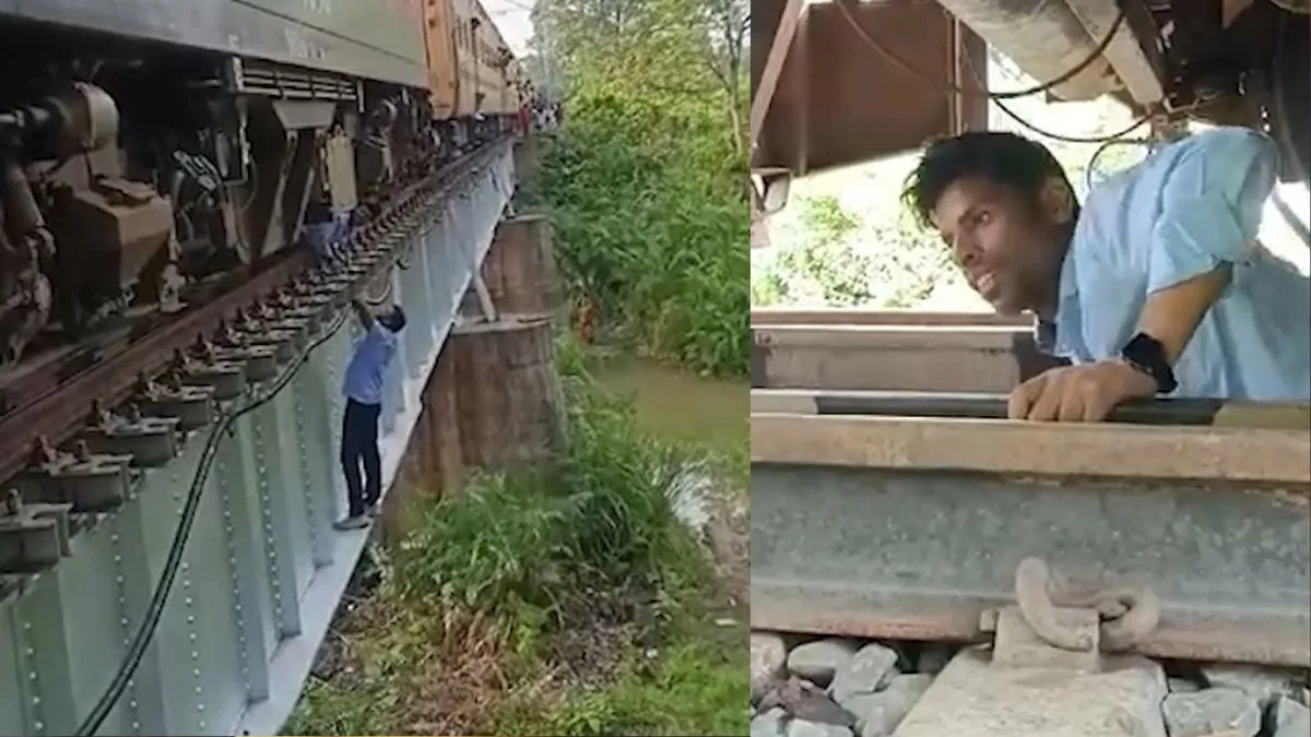 पश्चिम चंपारण: बगहा में रेलवे कर्मचारियों ने जान की बाजी लगाकर ट्रेन की मरम्मत की। घटना का वीडियो भी सामने आया है, जो इन दिनों सोशल मीडिया पर तेजी से वायरल हो रहा है। दरअसल, बगहा में पैसेंजर ट्रेन के लोको पायलट और को-लोको पायलट ने अपनी जान का रिस्क लेकर बीच पुल खड़ी ट्रेन की मरम्मत की। इस दौरान लोको पायलट ट्रेन और ट्रैक के बीच रेंगते हुए फॉल्ट वाली जगह तक पहुंचे। वहीं साथी ने पुल से लटक कर तार खींचा, जिससे ट्रेन फिर से स्टार्ट हो सकी। इस पूरे वाकये का वीडियो सामने आया है।
