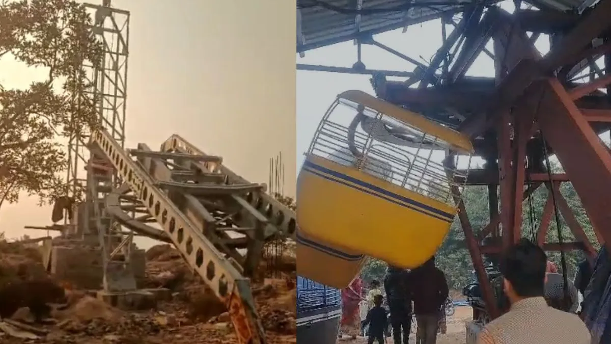 VIDEO: रोहतास में निर्माणाधीन रोपवे टूटने से हादसा, ट्रायल में अचानक धराशायी हुए पिलर और ट्रॉली
