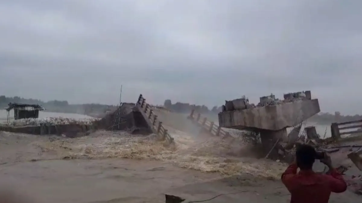 बिहार: फिर नदी में समाया करोड़ों की लागत से बना पुल, टूटने का Video आया सामने
