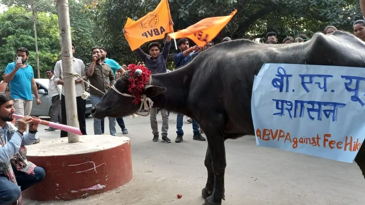 BHU Fee Hike: इलाहाबाद विश्वविद्यालय में फीस बढ़ोतरी को लेकर विवाद अभी थमा नहीं था कि अब खबर आ रही है कि बनारस विश्वविद्यालय (BHU) में फीस बढ़ने वाली है। फीस बढ़ोतरी को लेकर एबीवीपी और एनएसयुआई जैसे छात्र संगठनों ने विरोध प्रदर्शन भी शुरू कर दिए हैं। दरअसल, ये पूरा विवाद शुरू हुआ BHU की वेबसाइट पर आए एक नोटिफिकेशन से। यूनिवर्सिटी की वेबसाइट पर जो नोटिफिकेशन आया है इसके मुताबिक कई कोर्सों में फीस बढ़ोतरी सौ फीसदी तक हो सकती है। इसी को लेकर छात्र आंदोलित हैं। कुछ छात्रों ने तो अपना विरोध दर्ज कराने के लिए विश्वविद्यालय के बाहर भैंस बांध दी और उसके आगे कागज की बीन बना कर बजाने लगे।