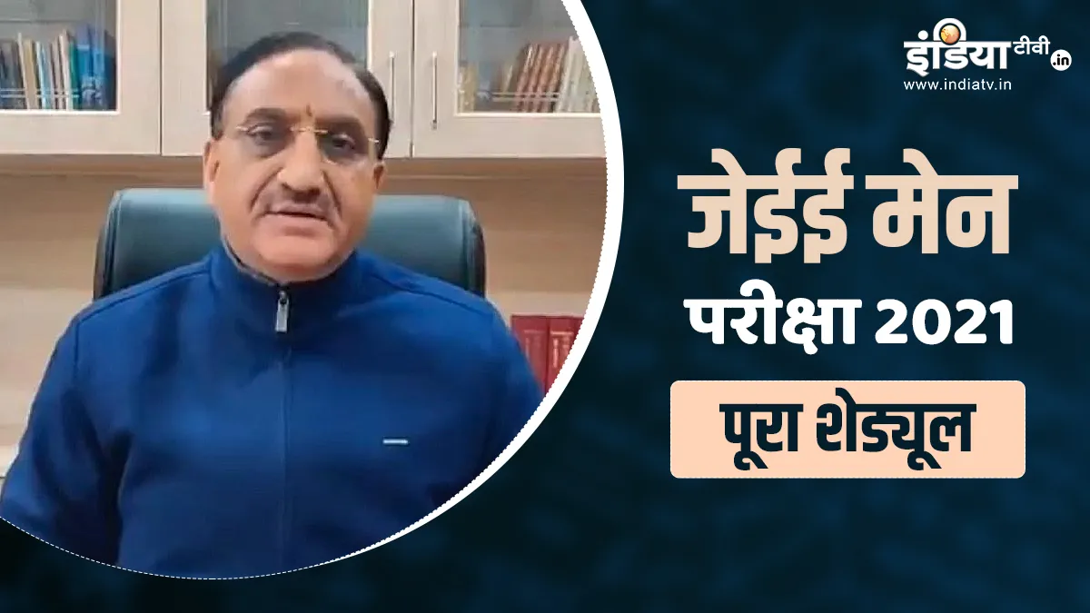 JEE Main 2021 Latest News: Exam Date (Out): केंद्रीय शिक्षा मंत्री रमेश पोखरियाल ने बुधवार को जेईई मेन परीक्षा का पूरा शेड्यूल जारी कर दिया है। शिक्षा मंत्री रमेश पोखरियाल निशंक ’ने बुधवार को घोषणा करते हुए कहा कि जेईई (मुख्य) परीक्षा अगले साल चार बार होगी। मंत्रालय द्वारा परीक्षा आयोजित करने के लिए प्राप्त सुझावों की समीक्षा के बाद यह निर्णय लिया गया। चार परीक्षा सत्र फरवरी, मार्च, अप्रैल और मई 2021 में आयोजित किए जाएंगे। फरवरी में पहला परीक्षा सत्र 23 फरवरी से 26 फरवरी 2021 के बीच होगा।