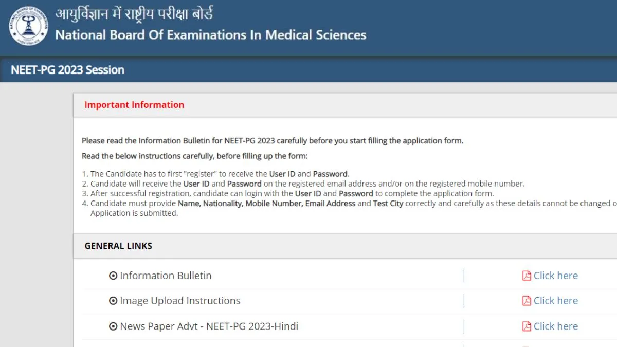 बता दें कि पोस्टग्रेजुएशन कोर्सों के लिए राष्ट्रीय पात्रता सह प्रवेश परीक्षा के लिए रजिस्ट्रेशन 12 फरवरी, 2023 को बंद होगा। ध्यान दें कि बोर्ड ने 9 फरवरी को natboard.edu.in पर रजिस्ट्रेशन लिंक फिर से शुरू कर दिया था। ऐसे सभी उम्मीदवारों के लिए एडिट विंडो 15 मार्च, 2023 को खोले जाएंगे। निर्धारित दिशा-निर्देशों के अनुसार उनके आवेदन में आवश्यक चित्र 18 फरवरी से 20 फरवरी, 2023 तक खोले जा सकेंगे।