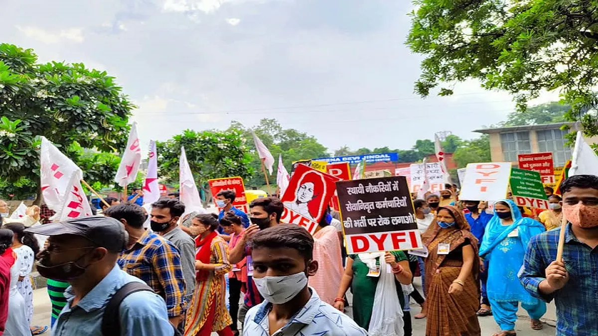 नई दिल्ली. डेमोक्रेटिक यूथ फेडरेशन ऑफ इंडिया (डीवाईएफआई) ने रविवार को दिल्ली के मुख्यमंत्री अरविंद केजरीवाल के आवास के बाहर प्रदर्शन किया और उनकी सरकार पर बेरोजगारी तथा बिगड़ती सार्वजनिक स्वास्थ्य व्यवस्था को सुधारने के मामले में कुछ नहीं करने का आरोप लगाया।