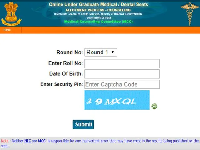 - सेकेंड राउंड की काउंसलिंग का रिजल्ट चेक करने के लिए सबसे पहले आधिकारिक वेबसाइट पर जाएं यानी mcc.nic.in पर.