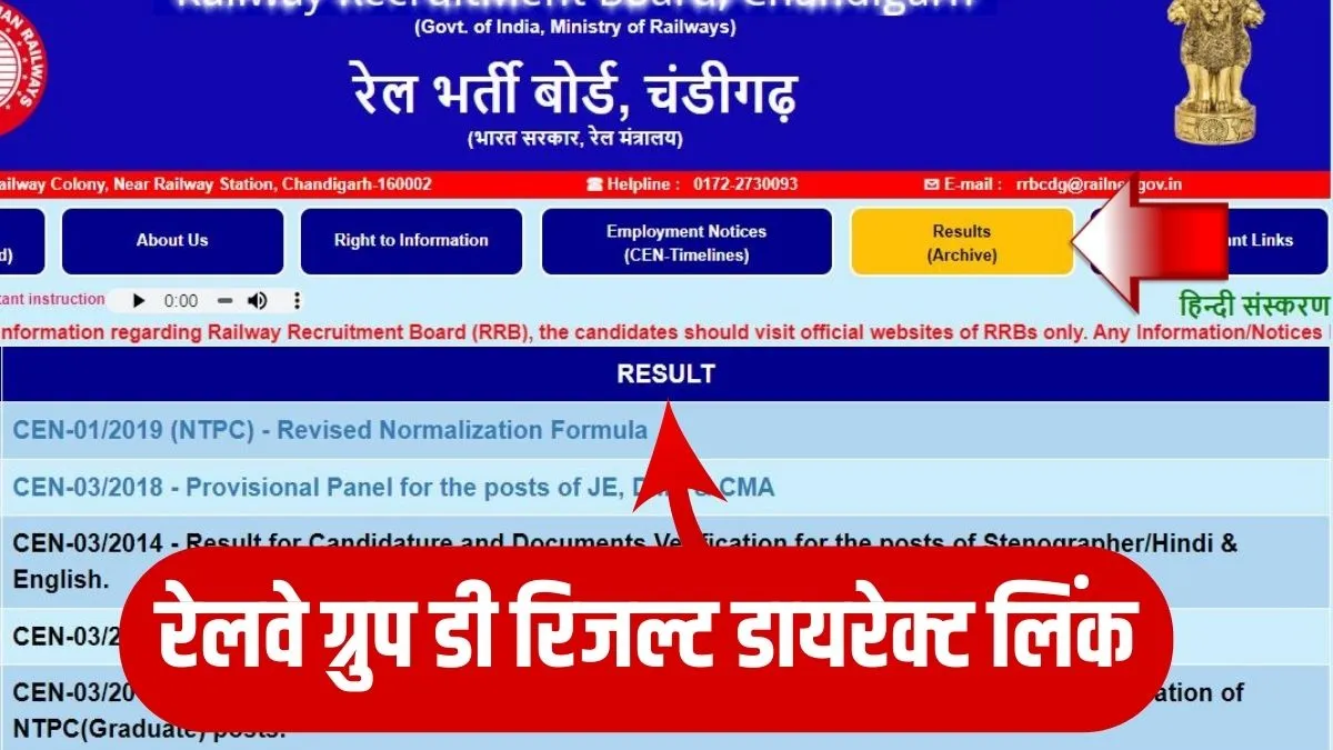 रेलवे ग्रुप डी रिजल्ट लिंक