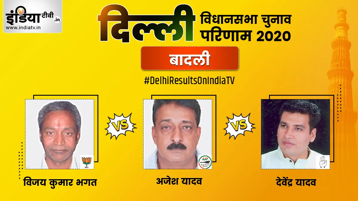 नई दिल्ली: दिल्ली विधानसभा चुनाव 2020 के नतीजे सामने आ रहे हैं। बादली विधानसभा सीट से आम आदमी पार्टी के उम्मीदवार आजेश यादव ने 29123 वोटों से जीत अपने नाम दर्ज कर ली है। 2015 में हुए विधानसभा चुनाव में इस सीट पर आप प्रत्याशी अजेश यादव की जीत हुई थी।