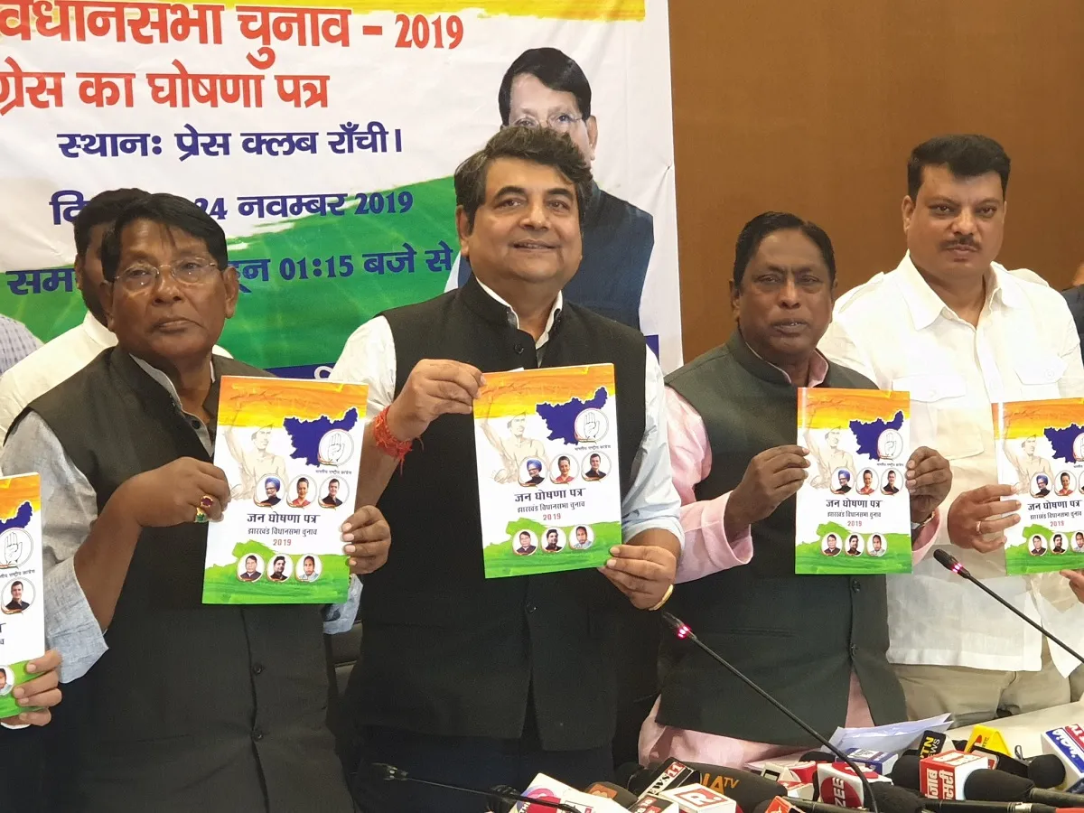 रांची। झारखंड विधानसभा चुनाव के लिए कांग्रेस ने रविवार को अपना घोषणापत्र जारी किया। पार्टी ने इसमें वादा किया कि अगर वह सत्ता में आई तो किसानों के दो लाख रुपये तक के कर्ज को माफ करेगी और भीड़ हिंसा के खिलाफ कानून बनाएगी।