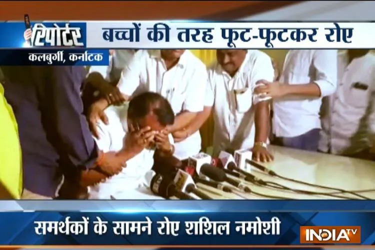 कर्नाटक चुनाव 2018: कर्नाटक के कलबुर्गी में बीजेपी नेता शशिल नमोशी कैमरे के सामने अचानक फूट-फूट कर रोने लगे। बीजेपी के इस नेता ने एक प्रेस कॉन्फ्रेस बुलाई थी। पत्रकार मौजूद थे। कैमरे ऑन थे...लेकिन तभी अचानक नेताजी सबके सामने ही रोने लगे। दरअसल नेताजी को उम्मीद थी कि विधानसभा चुनाव में उन्हें पार्टी की तरफ से टिकट जरूर दिया जाएगा। लेकिन बीजेपी की दूसरी लिस्ट में भी उनका नाम नहीं आया।