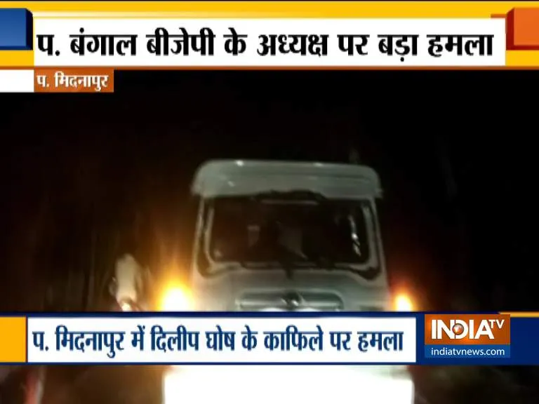 पश्चिम बंगाल बीजेपी अध्यक्ष दिलीप घोष के काफिले पर हमला- India TV Hindi Image Source : INDIA TV पश्चिम बंगाल बीजेपी अध्यक्ष दिलीप घोष के काफिले पर हमला