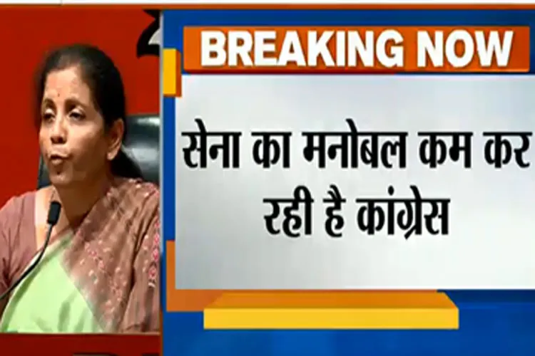 कांग्रेस के घोषणापत्र में किए गए वादों पर अमल करने से सेना का मनोबल गिरेगा। एक तरफ शहीद का दर्जा देने की मांग कांग्रेस करती है, दूसरी अफस्पा के कानून को कमजोर करने की कोशिश की जा रही है। यह देश के लिए अच्छा नहीं है: रक्षामंत्री निर्मला सीतारमण