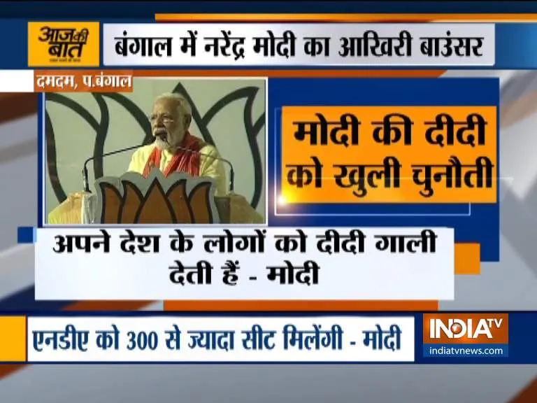नई दिल्ली: गुरुवार को नरेन्द्र मोदी और ममता बनर्जी ने पश्चिम बंगाल में पूरी ताकत लगाई। नरेन्द्र मोदी ने ममता के गढ़ में जाकर उन्हें ललकारा। पीएम मोदी ने दमदम की रैली में कहा, 'ममता दीदी..अब जनता ने आपको बंगाल से विदा करने का मूड बना लिया है। मोदी ने कहा कि 23 मई तक बंगाल के लोगों को तृणमूल कांग्रेस की गुंडागर्दी और झेलनी पड़ेगी। 23 मई के बाद जब एक फिर मोदी सरकार बनेगी तो बंगाल से घुसपैठियों को निकाला जाएगा और टोलाबाजी टैक्स वसूलने वालों को उनके कर्मों की सजा मिलेगी। उधर, ममता बनर्जी ने कहा कि नरेन्द्र मोदी ने उनके खिलाफ जो इल्जाम लगाए हैं या तो नरेन्द्र मोदी उन इल्जामों को साबित करें...वरना वो मोदी को जेल भेजेंगी।