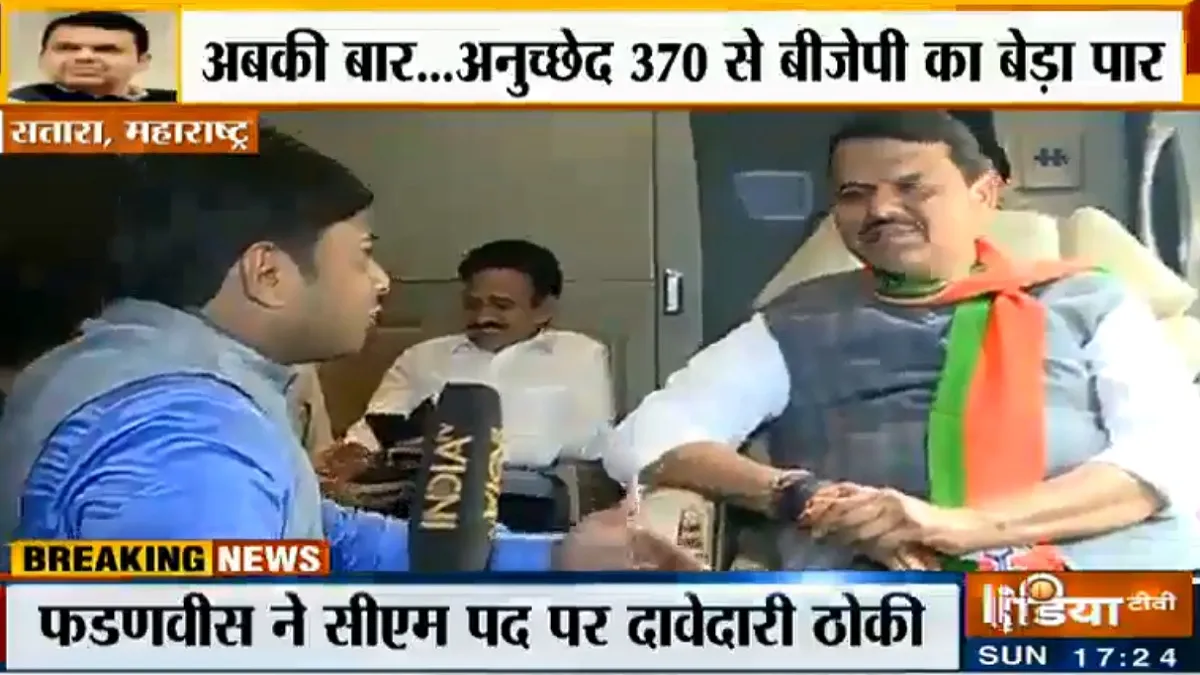 सतारा: महाराष्ट्र विधानसभा चुनावों के मद्देनजर राज्य में सियासत तेज होने लगी है। भाजपा पूरी प्लानिंग के साथ अपना लक्ष्य निर्धारित कर मैदान में उतर चुकी है। इंडिया टीवी को दिए खास इंटरव्यू में महाराष्ट्र के मुख्यमंत्री देवेंद्र फडणवीस ने राज्य के विधानसभा चुनावों के मुद्दों अपनी चुनावी प्लानिंग, मुद्दों और अपने महत्वाकांक्षाओं को लेकर खुलकर बातचीत की।