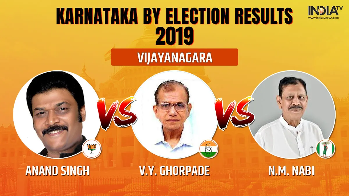 Karnataka Vijayanagara Vidhansabha By Election Results 2019: विजयनगर विधानसभा सीट से भारतीय जनता पार्टी ने आनंद सिंह को मैदान में उतारा है, 2018 में हुए कर्नाटक विधानसभा चुनाव में विजयनगर सीट से आनंद सिंह की ही जीत हुई थी लेकिन उस समय आनंद सिंह कांग्रेस पार्टी के प्रत्याशी थे