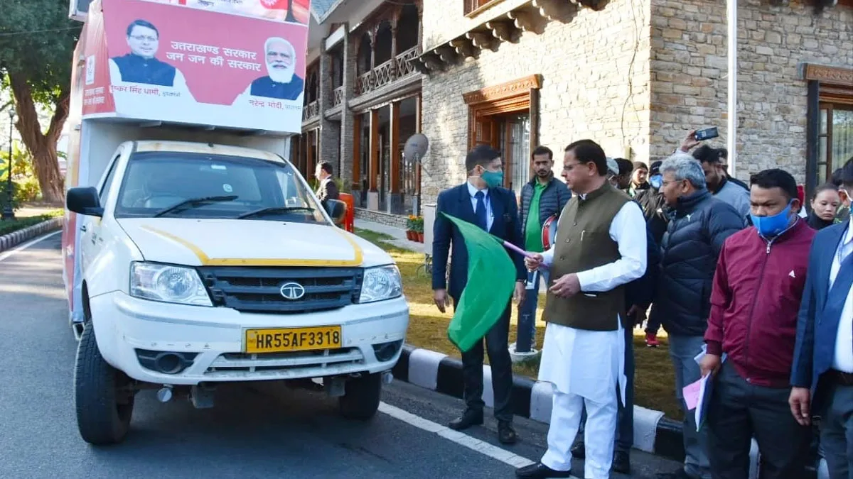 देहरादून: उत्तराखंड में नजदीक आ रहे विधानसभा चुनावों से पहले मुख्यमंत्री पुष्कर सिंह धामी ने बुधवार को सरकार की लोक कल्याणकारी योजनाओं एवं नीतियों के प्रचार-प्रसार के लिये प्रदेश के विभिन्न स्थानों के लिए विकास रथ और एलईडी वाहनों को रवाना किया। सरकार की योजनाओं को लोगों तक पहुंचाने के लिए प्रदेश के 300 प्रमुख स्थानों पर नुक्कड़ नाटकों एवं एलईडी द्वारा फिल्मों के माध्यम से प्रचार किया जाएगा।