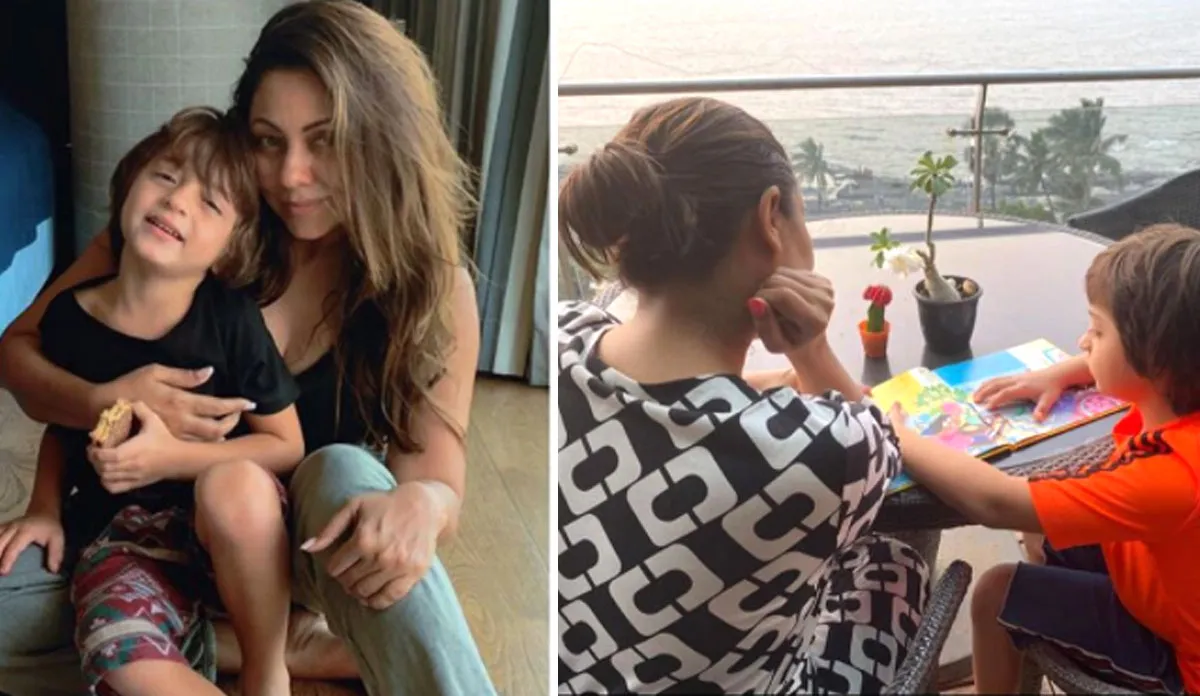 गौरी खान ने एक फोटो शेयर की, जिसमें वो अबराम को किताब पढ़ाती दिख रही हैं। दोनों समुंदर के किनारे बने अपने घर (मन्नत) की छत पर बैठे हैं। गौरी ने इस पोस्ट में करण जौहर का भी जिक्र किया है, क्योंकि अबराम करण जौहर की लिखी बुक पढ़ रहे हैं, जिसका नाम ऑल ग्रोन अप है।