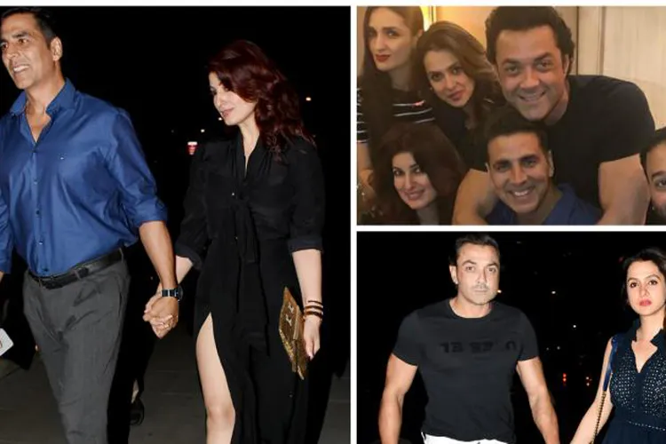 अक्षय ने ब्लू शर्ट और ग्रे ट्राउजर पहना था। उनकी पत्नी ट्विकंल ब्लैक ड्रेस और गोल्डन हील्स में खूबसूरत दिखीं। हाल ही में 'यमला पगला दीवाना: फिर से' में दिखे बॉबी देओल ब्लैक टी-शर्ट और वाइट ट्राउजर में नजर आए। उनके साथ उनकी पत्नी तान्या भी थीं, जिन्होंने मिडनाइट ब्लू ड्रेस पहना था।