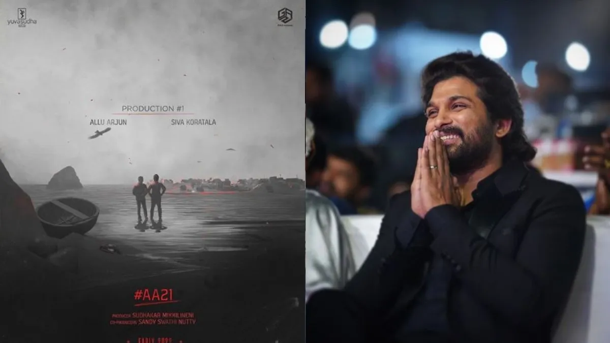 तेलुगू सुपरस्टार अल्लू अर्जुन ने शुक्रवार को इंस्टाग्राम पर अपनी अगली फिल्म की घोषणा की। फिल्म का निर्देशन कोरताला शिवा करेंगे। अर्जुन ने फिल्म के पहले पोस्टर को साझा किया, जिसका शीर्षक एए21 है। पोस्टर में दो लड़कों को तट के किनारे खड़े होकर गांव की ओर टकटकी लगाए देखा जा सकता है।