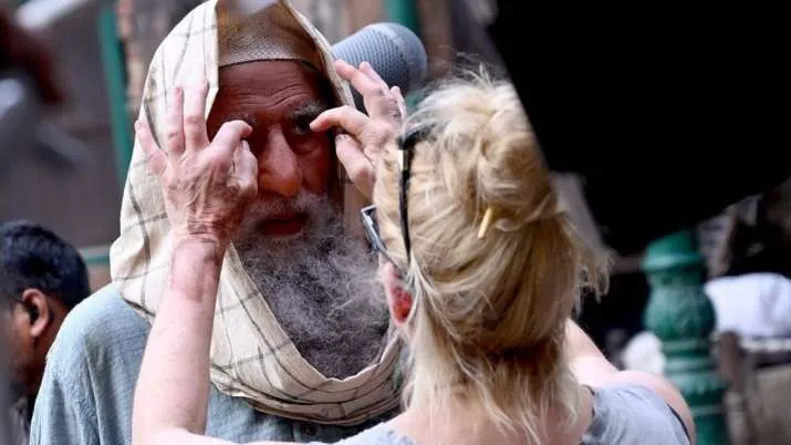 फिल्म में अमिताभ बच्चन का लुक काफी अलग है। एक लंबी दाढ़ी, पुराने स्कूली चश्मे, सिर पर एक स्कार्फ और एक कृत्रिम रूप से बनाए गए नाक के साथ बिग बी फिल्म में बहुत ही अलग दिख रहे हैं। गेटअप में आने के बाद बिग बी बिना पहचाने जाने के डर से बाहर घूमने निकल जाते थे। फिल्म के डायरेक्टर शूजीत सरकार ने बताया- "बहुत कम लोगों को एहसास हुआ कि क्या हो रहा था और किसी ने भी बच्चन को नहीं पहचाना और यही हमारा उद्देश्य था। मैं नहीं चाहता था कि वह फिल्म में अमिताभ बच्चन की तरह दिखें, मैं चाहता था कि वह मिर्जा की तरह दिखें, और यही हमें मिला भी। हां, हमारे शूट के खत्म होने के बाद, वह अक्सर गलियों में घूमते, स्थानीय लोगों के साथ बातचीत करते और शहर का अनुभव लेते, किसी ने भी नहीं पहचाना कि वह कौन हैं।"