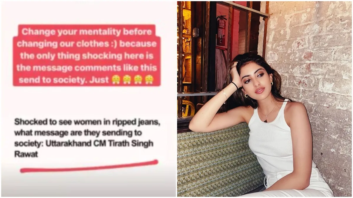 दिग्गज बॉलीवुड अभिनेता अमिताभ बच्चन की नातिन नव्या नवेली नंदा लैंगिक समानता और मानवाधिकारों को लेकर अपनी आवाज बुलंद करते हुए सोशल मीडिया पर काफी सक्रिय हैं। दिवा ने बुधवार को उत्तराखंड के मुख्यमंत्री तीरथ सिंह रावत की रिप्ड जींस पर की गई टिप्पणी पर प्रतिक्रिया दी और कहा कि उन्हें अपनी मानसिकता बदलने की जरूरत है। सीएम ने दावा किया कि रिप्ड जींस पहनकर महिलाएं सही संदेश नहीं भेज रही हैं। उन्होंने देहरादून में आयोजित एक कार्यशाला में भाग लेने के दौरान ये बातें कहीं। बयान का विरोध करते हुए, नव्या ने रिप्ड जींस में खुद की एक तस्वीर साझा की।