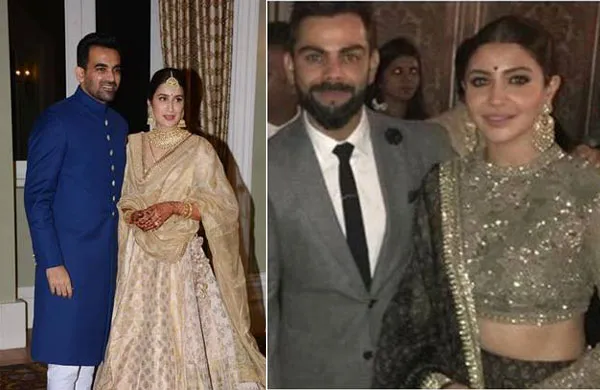 नई दिल्ली: शाहरुख खान की फिल्म 'चक दे! इंडिया' की प्रीति सब्रवाल यानी सागरिका घाटगे और पूर्व क्रिकेटर जहीर खान ने शादी कर ली है। दोनों का ग्रैंड रिसेप्शन सोमवार रात मुंबई के ताज पैलेस होटल में रखा गया था। इस मौके पर बॉलीवुड और क्रिकेट की दुनिया के कई जाने-माने सितारे पहुंचे। लेकिन सबकी नजर विराट कोहली और उनकी खूबसूरत गर्लफ्रेंड अनुष्का शर्मा पर थी। दोनों इस पार्टी में बेहद डैशिंग लग रहे थे। इस पार्टी में विराट ने ग्रे सूट पहना था, जबकि अनुष्का ग्रे और सिल्वर कलर की लहंगा चोली में नजर आईं।