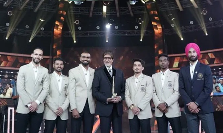 भारतीय फिल्म जगत के दिग्गज अभिनेता अमिताभ ने सोमवार को इंस्टाग्राम पर 'कौन बनेगा करोड़पति' के सेट से भारतीय खिलाड़ियों के साथ एक फोटो साझा की। इस फोटो के साथ पोस्ट में अमिताभ ने लिखा, "केबीसी के कर्मवीर एपिसोड में भारतीय हॉकी टीम का सम्मान। इनकी प्रतिबद्धिता और प्रयास देश के लिए तुलना से परे है।"