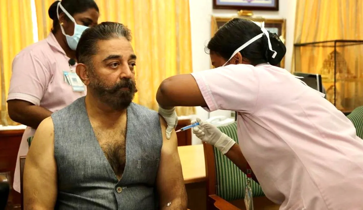 साउथ फिल्मों के सुपरस्टार और मक्कल नीधि मय्यम पार्टी प्रमुख कमल हासन ने चेन्नई में कोविड-19 टीके की पहली खुराक ली है। उन्होंने सोशल मीडिया प्लेटफॉर्म पर इस बात की जानकारी दी है। साथ ही कहा है कि ये वैक्सीन आपके साथ-साथ दूसरों का भी ख्याल रखेगा।