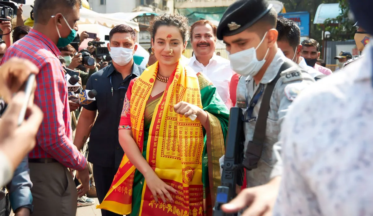कंगना रनौत बहन रंगोली के साथ मंदिर के पास कंड़ी सुरक्षा के बीच नजर आईं। इस मौके पर कंगना ने ग्रीन कलर की सिल्क साड़ी पहनी। जिसमें गोल्डन कलर से बॉर्डर है। इसके साथ ही उन्होंने खूबसूरत नेकलेस के साथ ट्रेडिशनल नथ पहनी।