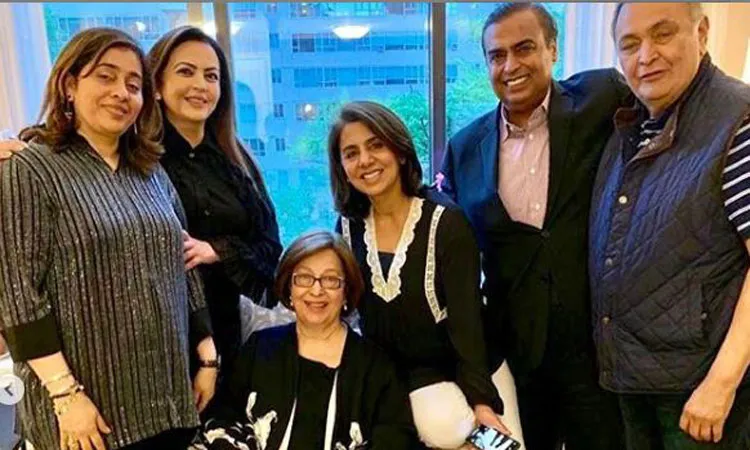 रिलायंस इंडस्ट्रीज के मालिक मुकेश अंबानी और उनकी पत्नी नीता अंबानी अभिनेता ऋषि कपूर का हालचाल पूछने के लिए न्यूयॉर्क पहुंचे। ऋषि 2018 से यहां के एक अस्पताल में अपना इलाज करा रहे हैं। मुकेश और नीता ने यहां उनके परिवार के लोगों से भी मुलाकात की। ऋषि ने रविवार को ट्विटर पर दो तस्वीरे को पोस्ट करते हुए कहा, "हमसे मिलने के लिए मुकेश और नीता को धन्यवाद। हम भी आपसे प्यार करते हैं।" इस कैप्शन के साथ वाली तस्वीर में ऋषि और उनकी पत्नी नीतू को अंबानी परिवार के लोगों के साथ मुस्कुराते हुए देखा जा सकता है।