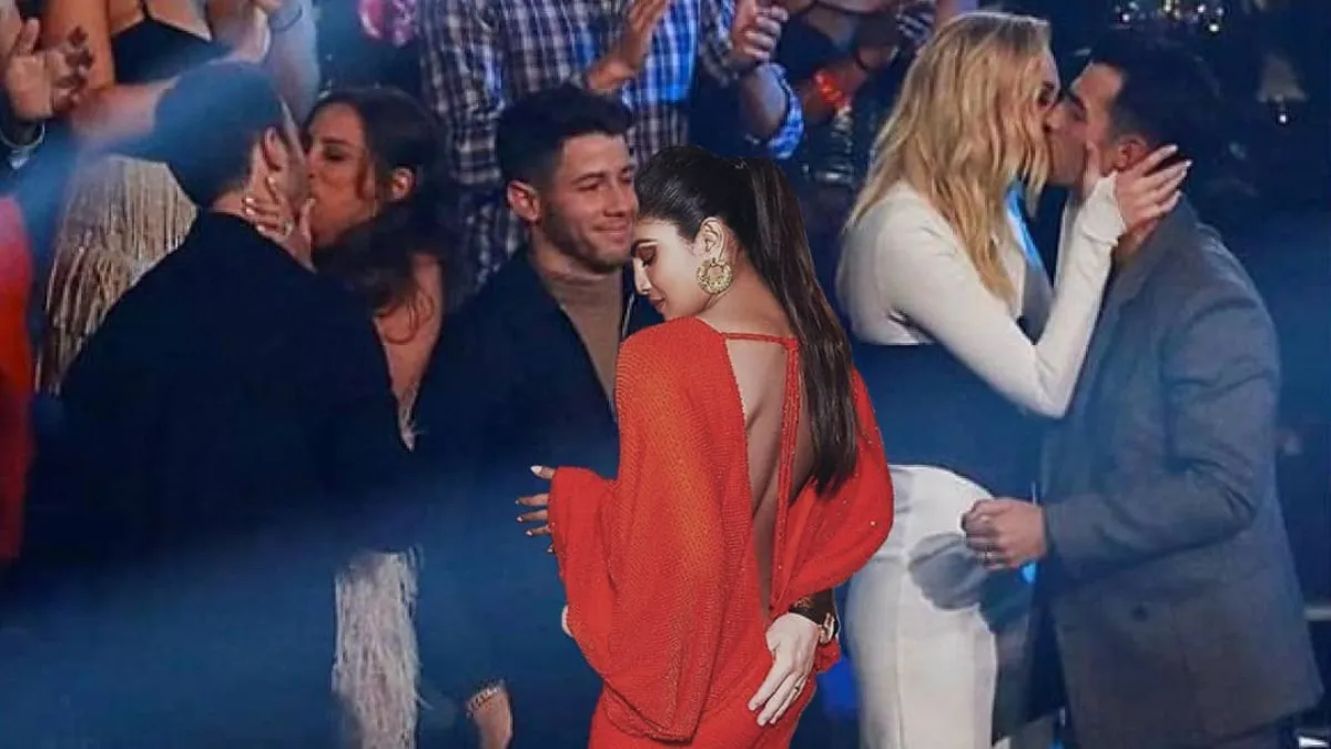मुंबई: बॉलीवुड ब्यूटी और ग्लोबल आइकॉन प्रियंका चोपड़ा के पति निक जोनस को हाल ही में बेस्ट पॉप वीडियो सॉन्ग अवॉर्ड से सम्मानित किया गया। यह अवॉर्ड निक और उनके भाइयों जो जोनस और केविन जोनस को सकर गाने के लिए मिला। अमेरिकन सिंगर निक जोनस की एक तस्वीर तब से इंटरनेट पर वायरल हो रही है जब से उन्होंने वीएमए में पुरस्कार जीता है।जैसे ही जोनस ब्रदर्स को विजेता घोषित किया गया था, उन तीनों ने अपनी सीट से कूदकर अपनी-अपनी पत्नियों को चूमा, सोफी ने जो और डेनियल ने केविन को चूमा, जबकि निक बीच में खड़े थे क्योंकि प्रियंका चोपड़ा वहां नहीं थीं। अब प्रियंका चोपड़ा ने एक फोटोशॉप की हुई तस्वीर शेयर की है।