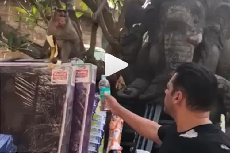 सलमान खान इन दिनों सोशल मीडिया पर काफी एक्टिव हैं। शायद ही ऐसा कोई दिन होगा जब दबंग खान सलमान वीडियो या फोटो शेयर नहीं करते। हाल ही में सलमान ने अपनी सोशल मीडिया अकाउंट से एक दिलचस्प वीडियो शेयर किया है इस वीडियो में सलमान बंदर को प्लास्टिक की बोतल से पानी पिलाते नजर आ रहे हैं सिर्फ इतना ही नहीं जब सलमान बंदर को पानी या खाने को दे रहे हैं तब बंदर बहुत ही प्यार से उनकी तरफ बढ़ता है और जब वह अपना हाथ हटाते हैं तब गुस्सा होने लगता है। सलमान खान का यह वीडियो सोशल मीडिया पर वायरल हो रहा है और देखते-देखते अभी तक इस वीडियो को 2 लाख 87 हजार 3सौ 45 लोग देख चुके हैं। आपको बता दें कि सलमान ने इस वीडियो को शेयर करते हुए प्यारा सा कैप्शन लिखा है- 'सलमान ने लिखा है कि हमारा बजरंगी भाईजान प्लास्टिक की बोतल से पानी पीता है'।
