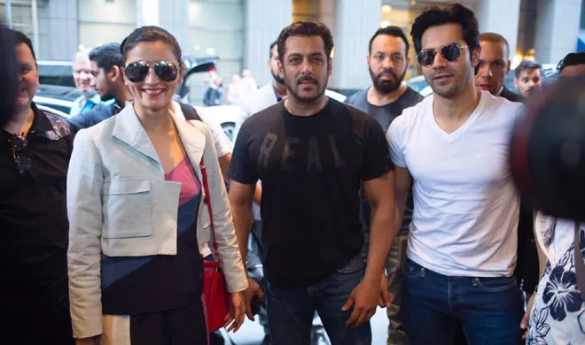जैसे ही सितारे न्यूयॉर्क पहुंचे सभी का एयरपोर्ट पर शानदार स्वागत किया गया। वहीं इन सितारों ने भी मीडिया के सामने आकर कई तस्वीर भी क्लिक करवाईं। इसके बाद सभी ने अपने-अपने होटल की रुख कर लिया। सलमान खान ब्लैक टी-शर्ट और ब्लू जीन्स पहने हुए दिखाई दिए। वहीं वरुण धवन सफेद टी-शर्ट और नीली जीन्स पहनकर पहुंचे, आलिया भट्ट भी वरुण के साथ ही एयरपोर्ट से बाहर निकलीं।