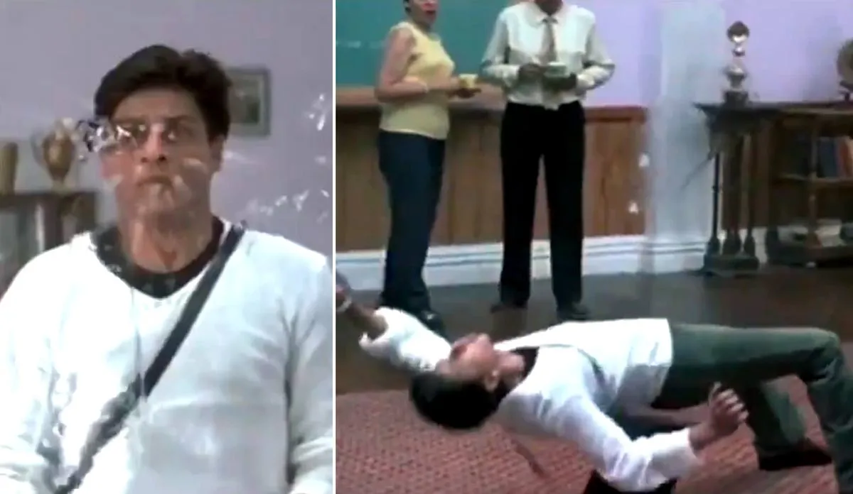 दरअसल, शाहरुख खान की फिल्म 'मैं हूं ना' में कॉलेज के स्टूडेंट्स एक प्रोफेसर के थूककर बोलने की आदत से परेशान होते हैं। कोई मास्क पहनकर बचने की कोशिश करता है तो कोई टीशर्ट से अपना मुंह ढक लेता है, लेकिन शाहरुख खान अलग ही अंदाज में स्टंट करते दिखाई देते हैं।