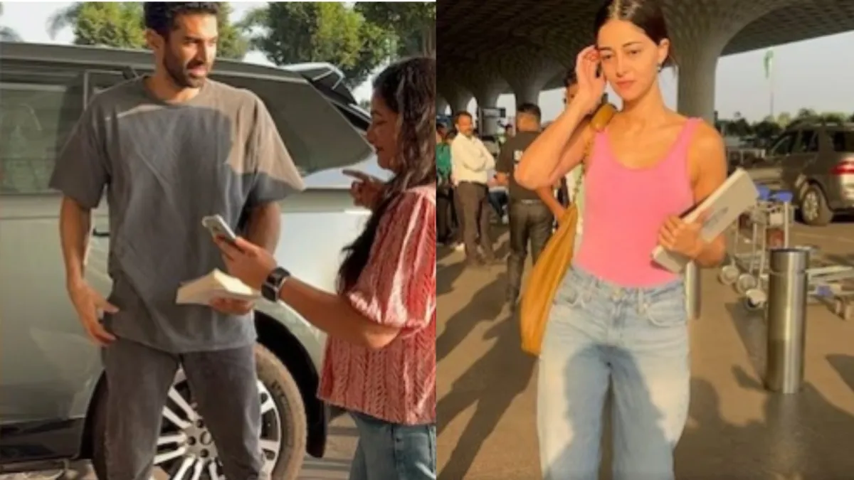 आदित्य रॉय कपूर को एयरपोर्ट पर मैचिंग जींस के साथ ग्रे टी-शर्ट में देखा गया। वहीं इसी दौरान अनन्या पिंक टैंक टॉप और लो-कट बैक के साथ ब्लू जींस और स्नीकर्स में बेहद खूबसूरत लग रही थीं। 'ड्रीम गर्ल 2' की एक्ट्रेस ने अपने बालों का बांध हुआ है। एक्ट्रेस ने मिनिमल मेकअप से लुक को पूरा किया है। इसके पहले कपल को स्पेन और पुर्तगाल में वेकेशन एंजॉय करता देखा गया था। उनकी रोमांटिक वेकेशन की वीडियो और फोटोज सोशल मीडिया पर खूब वायरल हुई थीं।