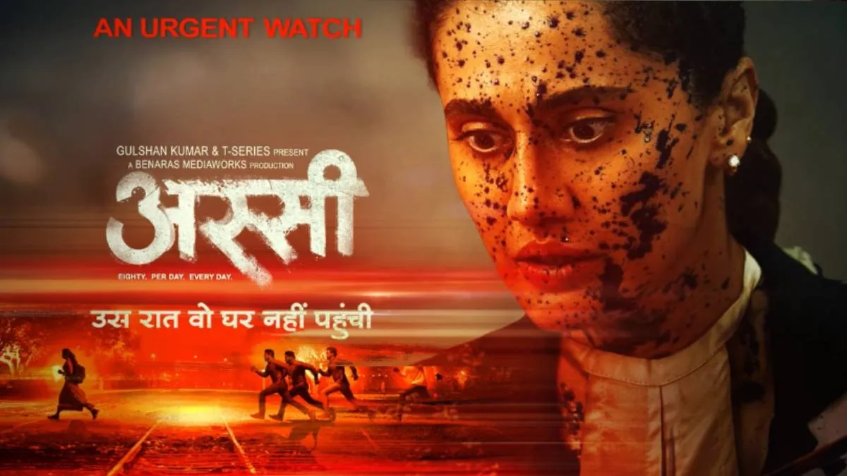 23 जनवरी 2026 को फिल्म ‘अस्सी’ की पहली झलक एक मोशन पोस्टर के रूप में रिलीज की गई। यह मोशन पोस्टर फिल्म की कहानी की झलक देने के साथ-साथ उसके टोन को भी साफ तौर पर दर्शाता है। पोस्टर में तापसी पन्नू का लुक बेहद इंटेंस दिखाई देता है। उनके चेहरे पर खून के छींटे हैं, आंखों में डर और हैरानगी साफ झलक रही है, जो कहानी की गंभीरता को दर्शाता है। मोशन पोस्टर में एक और चौंकाने वाला दृश्य भी दिखाया गया है, जहां स्कूल का बैग लिए एक बच्ची भागती नजर आती है और उसके पीछे तीन आदमी उसका पीछा कर रहे हैं। इसी के साथ फिल्म का टाइटल ‘अस्सी’ सामने आता है और टैगलाइन लिखी है, 'उस रात वो घर नहीं पहुंची।' यह लाइन ही फिल्म की कहानी की गहराई और दर्द को बयां कर देती है।