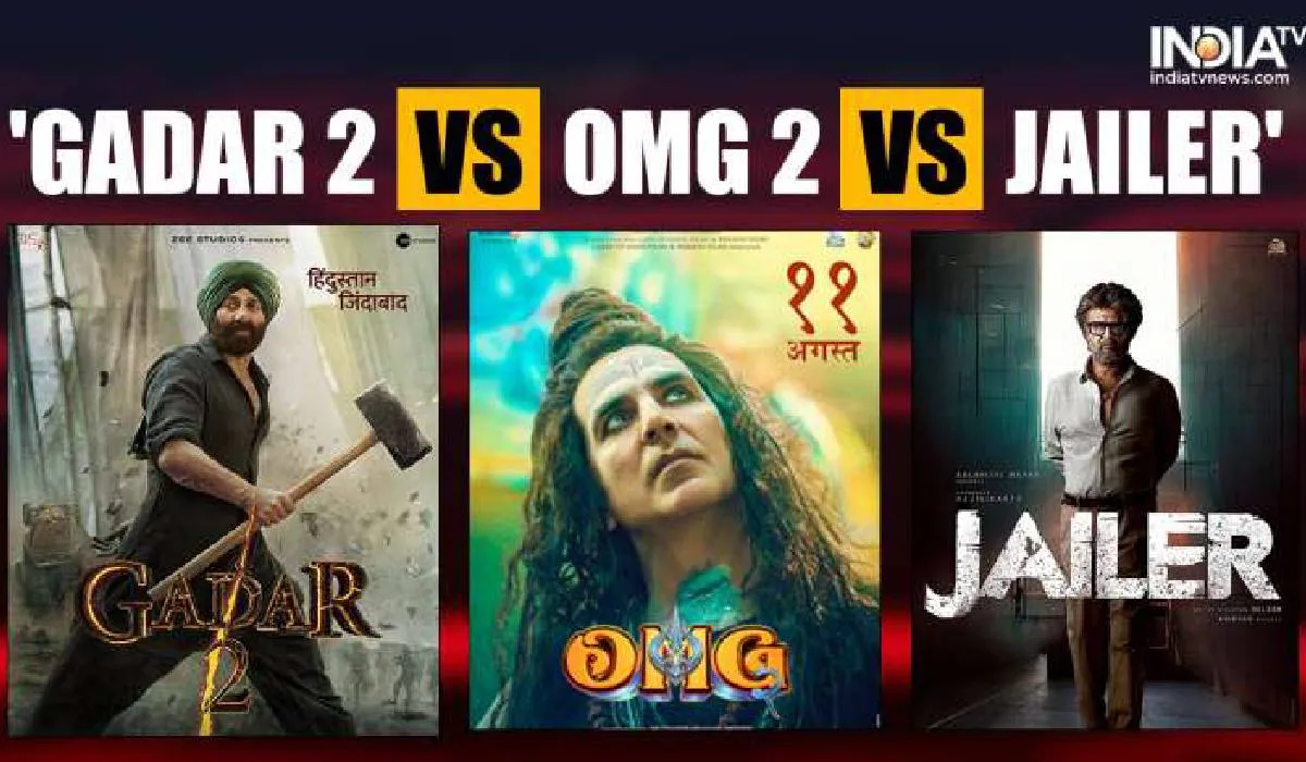 भारतीय सिनेमा लवर्स के लिए यह सप्ताह किसी जश्न से कम नहीं है, क्योंकि इस हफ्ते रजनीकांत, अक्षय कुमार और सनी देओल तीनों स्टार्स अपने फैंस के लिए अपनी मोस्ट अवेटेड फिल्में लेकर सिनेमाघरों में आ रहे हैं। रजनीकांत की फिल्म 'जेलर' आज सिनेमाघरों में रिलीज हो गई है। फिल्म को पहले शो से ही ग्रैंड ओपनिंग मिली है। वहीं 'गदर 2' और 'ओएमजी 2' से फैंस को काफी ज्यादा उम्मीदें। दोनों ही फिल्मों की काफी प्री-बुकिंग हुई हैं। प्री-बुकिंग के अनुसार बॉक्स ऑफिस की रेस में कौन कितना आगे निकल गया है, ये आंकड़े भी सामने आ गए हैं।