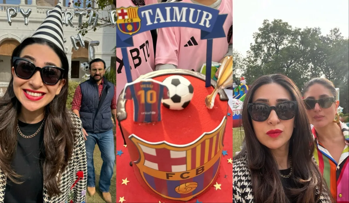 इन फोटोज में करिश्मा की गोद में तैमूर नजर आ रहे हैं और एक्ट्रेस तैमूर पर प्यार लुटाते नजर आ रही हैं। जन्मदिन की टोपी पहने हुए और जीजा सैफ अली खान और करीना के साथ पोज देते हुए कुछ तस्वीरें शेयर की हैं। तैमूर के केक को मेस्सी की एफसी बार्सिलोना जर्सी, एक फुटबॉल और एक ट्रॉफी से सजाया गया था। परिवार ने पटौदी पैलेस के लॉन में सूरज की रोशनी में तैमूर का जन्मदिन मनाया।