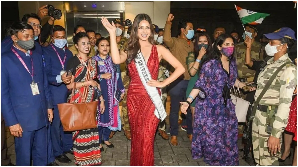 हाल ही में मिस यूनिवर्स 2021 का ताज पहनने वाली हरनाज कौर संधू मिस यूनिवर्स के रूप में भारत पहुंच चुकी हैं। 15 दिसंबर को हरनाज संधू मुंबई एयरपोर्ट पहुंची, एयरपोर्ट पर उनका भव्य स्वागत हुआ। उनके हाथ में तिरंगा भी नजर आया। इस दौरान हरनाज संधू ने स्फटिक वर्क का रेड गाउन पहना था, जिसमें वो बेहद खूबसूरत लग रही थीं। 21 साल की हरनाज़ संधू, ने 70वीं मिस यूनिवर्स 2021 प्रतियोगिता में भारत का प्रतिनिधित्व किया और दो दशक बाद भारत में ताज लेकर घर आईं। लारा दत्ता साल 2000 में मिस यूनिवर्स बनी थीं, उससे पहले साल 1994 में सुष्मिता सेन ने मिस यूनिवर्स के ताज को भारत लाया था।