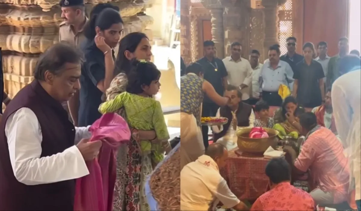 रिलायंस के चेयरमैन और मैनेजिंग डायरेक्टर मुकेश अंबानी अपने बड़े बेटे आकाश अंबानी और बहू श्लोका मेहता के साथ गुजरात के द्वारकाधीश मंदिर में पूजा-अर्चना करने पहुंचे। अपने दादा मुकेश अंबानी के साथ पृथ्वी और वेदा भी नजर आए। इस खूबसूरत पल का एक वीडियो सोशल मीडिया पर सामने आया है, जिसमें उन्हें मंदिर परिसर में प्रवेश करते और बाहर निकलते हुए दिखाया गया। अंबानी परिवार का ये वीडियो सोशल मीडिया पर खूब पसंद किया जा रहा है। कड़ी सुरक्षा के बीच अंबानी परिवार को मंदिर में प्रवेश करते देखा गया। इसके पहले अनंत अंबानी ने अपनी कर्मभूमि जामनगर से भारत के सबसे पवित्र शहरों में से एक द्वारका तक 170 किलोमीटर की पदयात्रा की थी। ये पदयात्रा 29 मार्च को शुरू की गई थी। वे प्रतिदिन लगभग 20 किलोमीटर की दूरी तय कर रहे थे। प्रत्येक रात लगभग 7 घंटे पैदल चल रहे थे।