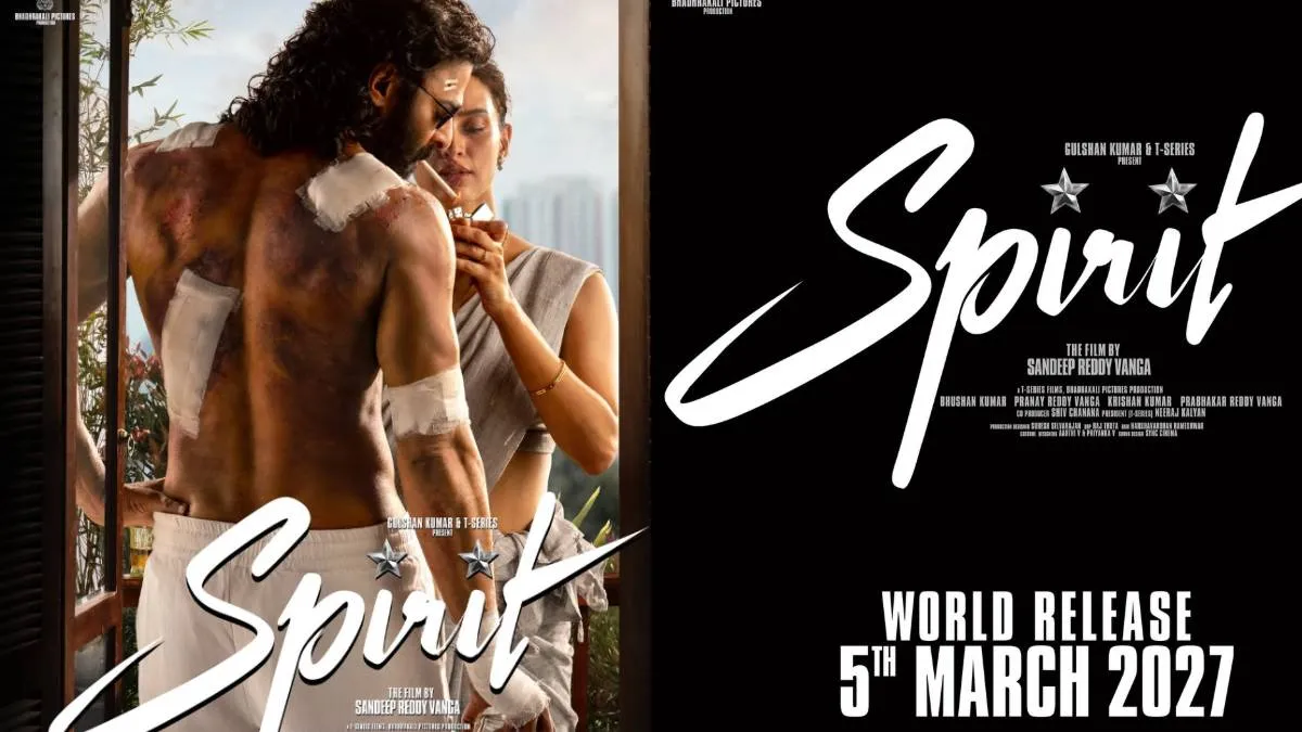 प्रभास और संदीप रेड्डी वांगा की फिल्म स्पिरिट इस समय सबसे चर्चित फिल्मों में से एक है। इस चर्चा को और बढ़ाते हुए, फिल्म निर्माताओं ने आखिरकार इस ड्रामा की रिलीज डेट तय कर ली है। प्रभास और तृप्ति डिमरी मुख्य भूमिका में हैं और स्पिरिट 5 मार्च, 2027 को सिनेमाघरों में रिलीज होगी। अपनी अगली फिल्म की रिलीज डेट की घोषणा करते हुए, प्रभास ने अपने इंस्टाग्राम हैंडल पर लिखा, 'स्पिरिट 5 मार्च, 2027 को विश्व स्तर पर रिलीज होने के लिए तैयार है।' इसी बीच 'एनिमल' के निर्माता ने 1 जनवरी, 2026 की आधी रात को स्पिरिट का पहला लुक पोस्टर जारी करके नेटिज़न्स को चौंका दिया। दिल को छू लेने वाले इस पोस्टर में घायल प्रभास खिड़की के पास खड़े नजर आ रहे हैं, जबकि तृप्ति उनकी सिगरेट जला रही हैं।