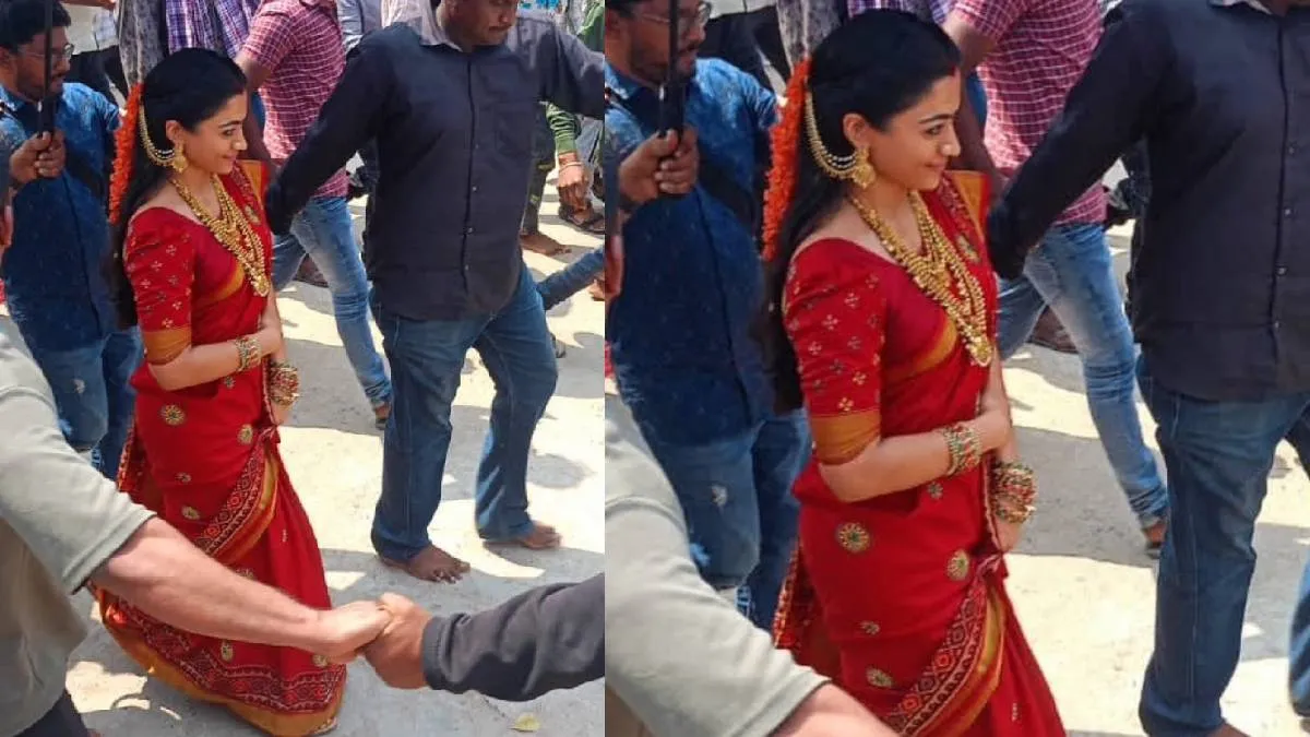 रश्मिका मंदाना का ये लुक कमाल का लग रहा है। वो सोने से लदे गहनों और लाल साड़ी में एक खूबसूरत साउथ इंडियन दुल्हन लग रही हैं। उन्होंने हाथ में हरी और लाल चूड़ियों के साथ ही बालों में नारंगी रंग के फूलों का गजरा भी लगाया है। हाई सिक्योरिटी के बीच वो आगे बढ़ती दिख रही हैं। वहीं सेट से अल्लु अर्जुन का भी वीडियो सामने आया है, जिसमें वो धोती और कुर्ता पहने नजर आ रहे हैं। उनका पुष्पाराज वाला स्टाइल देखने को मिल रहा है।
