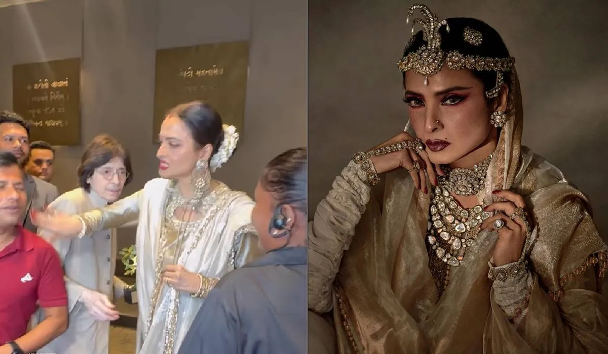 हाल में ही दिग्गज एक्ट्रेस रेखा का एक वीडियो सामने आया है। रेखा इस वीडियो में बेहद खूबसूरत लग रही हैं। एक्ट्रेस पूरे गोल्डन कपड़ों में सोनपरी लग रही हैं। इस वीडियो में कुछ ऐसा हुआ जो काफी वायरल हो रहा है।
