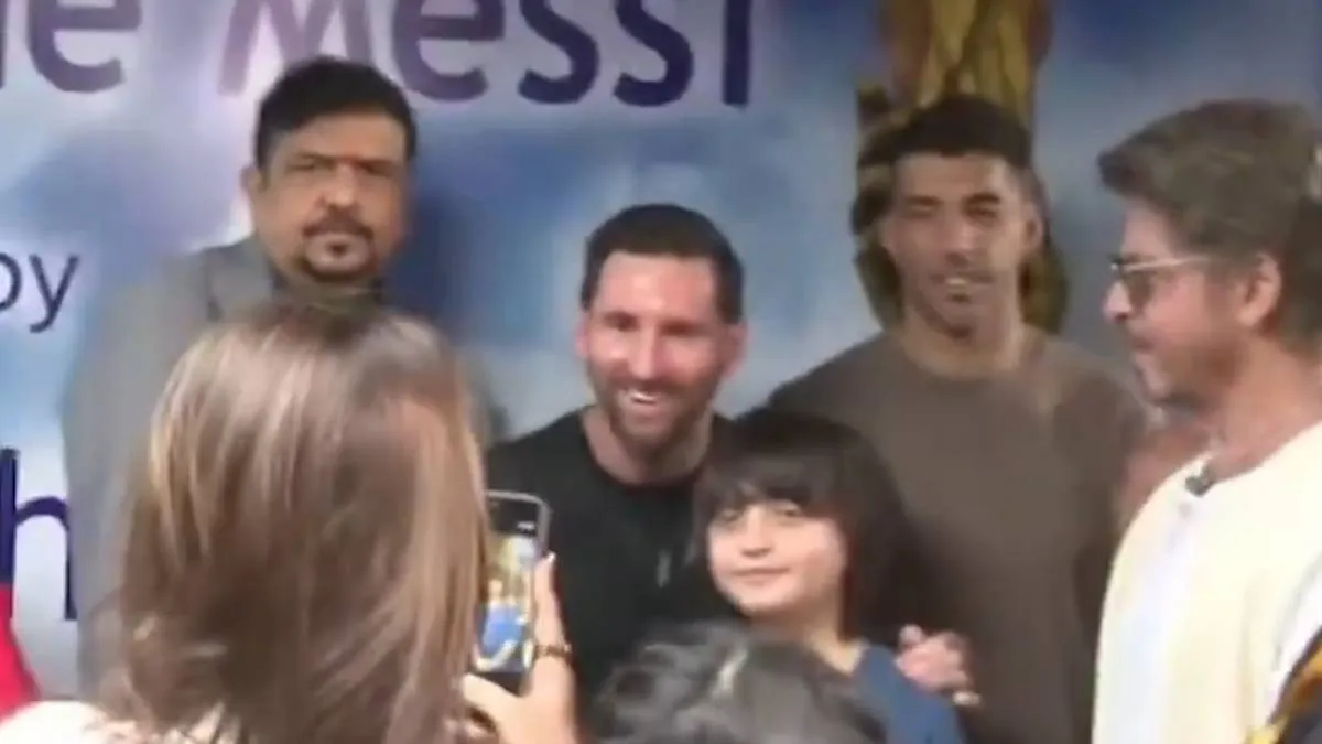 बॉलीवुड सुपरस्टार शाहरुख खान ने एक बार फिर प्रशंसकों के बीच जबरदस्त उत्साह पैदा कर दिया है। शाहरुख खान शनिवार को कोलकाता में फुटबॉल के दिग्गज लियोनेल मेसी से मिलने पहुंचे हैं। शाहरुख खान के साथ उनके छोटे बेटे भी नजर आए हैं। शनिवार की सुबह शाहरुख खान अपने सबसे छोटे बेटे अबराम के साथ कोलकाता पहुंचते नजर आए। उनके साथ उनकी मैनेजर पूजा ददलानी भी थीं। उनके आगमन के तुरंत बाद, 'दिलवाले दुल्हनिया ले जाएंगे' अभिनेता के हवाई अड्डे से बाहर निकलते हुए कई वीडियो सोशल मीडिया पर वायरल हो गए और प्रशंसकों का ध्यान आकर्षित कर लिया।