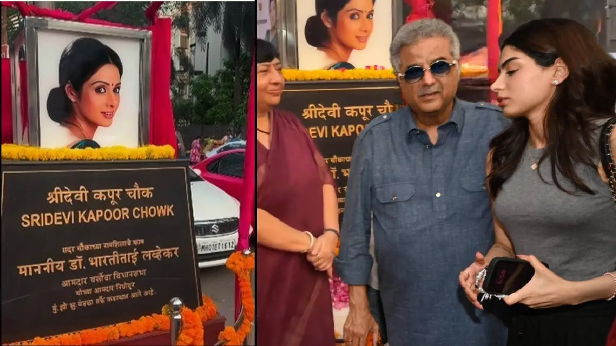 बॉलीवुड की सुपरस्टार रहीं श्रीदेवी का 2018 में निधन हो गया था। दुबई के एक होटल में संदिग्ध परिस्थितियों में श्रीदेवी का बाथरूम में शव मिला था। एक्ट्रेस के निधन के बाद पूरी इंडस्ट्री में मातम छा गया था। फिल्मी सितारों ने उन्हें अंतिम विदाई दी थी। अब एक्ट्रेस की मौत के 6 साल बाद उनके नाम पर मुंबई में एक चौक बनाया गया है। बीते रोज दशहरा की शाम मुंबई के लोखंडवाला क्षेत्र में एक चौक का नाम एक्ट्रेस के नाम पर श्रीदेवी चौक रखा गया है। इस खास मौके पर श्रीदेवी के पति और प्रोड्यूसर बोनी कपूर मौजूद रहे। बोनी कपूर के साथ उनकी बेटी खुशी कपूर भी मौके पर मौजूद रहीं। साथ ही शबाना आजमी भी इस उद्घाटन के समय श्रीदेवी चौक में शामिल हुईं।