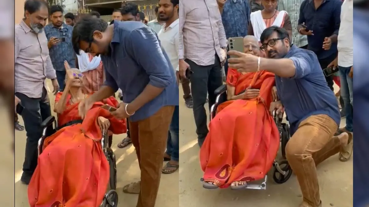 तमिल सिनेमा के मशहूर एक्टर विजय सेतुपति जिन्हें आप 'मक्कल सेलवन' के नाम से भी जानते हैं, आज लोकसभा चुनाव के पहले चरण की वोटिंग के दौरान चेन्नई के एक मतदान केंद्र पर अपने मताधिकार का प्रयोग करने पहुंचे। इस दौरान उनकी मुलाकात कई फैंस से हुई, लेकिन इस बीच उनकी नजर व्हीलचेयर पर बैठी एक बुजुर्ग महिला पर पड़ी। ये महिला भी अपना वोट डालने आई थीं। एक्टर ने इनके फैन हो गए और खुद आगे बढ़कर उनसे मिलने गए। इस दौरान का एक वीडियो भी सामने आया है, जो तेजी से वायरल हो रहा है। इस वीडियो को देखने वाले सभी लोग एक्टर की खूब तारीफें कर रहे हैं। लोगों को उनका अंदाज भा गया है। इस वीडियो में उन्होंने बुजर्ग महिला के साथ सेल्फी खींचकर लोगों का दिल जीत लिया है।
