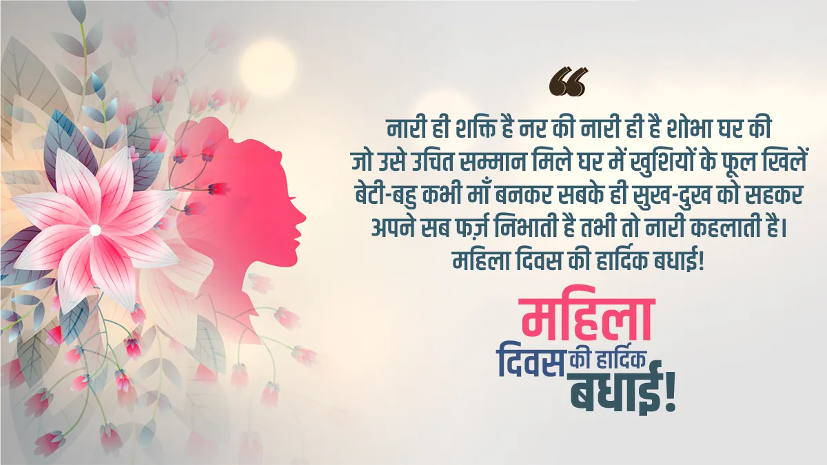 8 मार्च को दुनिया भर में अंतर्राष्ट्रीय महिला दिवस मनाया जाता है। इस मौके पर लोग अपने जीवन की सबसे खास और प्यारी महिला को शुभकामनाएं देना पसंद करते हैं। हम आपके लिए इसे और आसान बनाने वाले हैं, हम आपको कुछ ऐसे कोट्स और विशेज कार्ड दे रहे हैं जिन्हें आप अपन जीवन की खास महिलाओं को भेज सकते हैं और इस दिन को उनके लिए खास बना सकते हैं।