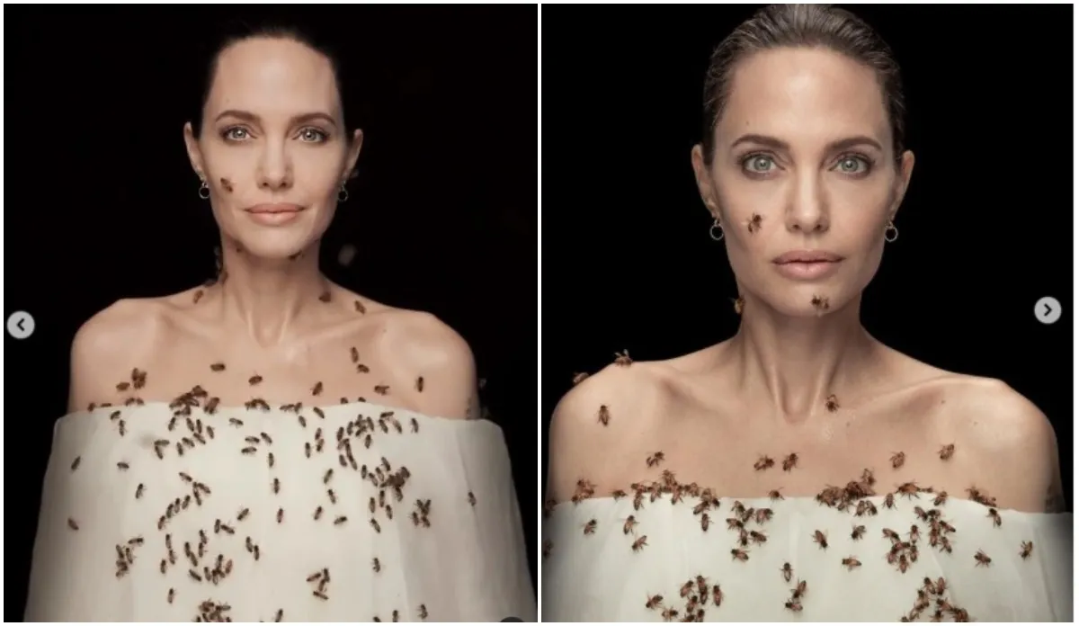 हॉलीवुड की मशहूर एक्ट्रेस एंजेलिना जोली प्रोफेशनल लाइफ के साथ-साथ निजी जिंदगी की वजह से भी चर्चा में रहती हैं। उनका लेटेस्ट फोटोशूट काफी ज्यादा चर्चा में है। उनका एक वीडियो सोशल मीडिया पर तेजी से वायरल हो रहा है, जिसमें वो मधुमक्खियों से घिरी हुई हैं। उनके चेहरे पर मधुमक्खियां चिपकी हुई हैं, लेकिन एंजेलिना के एक्सप्रेशंस बेहद शानदार हैं, जिसकी फैंस तारीफ कर रहे हैं।